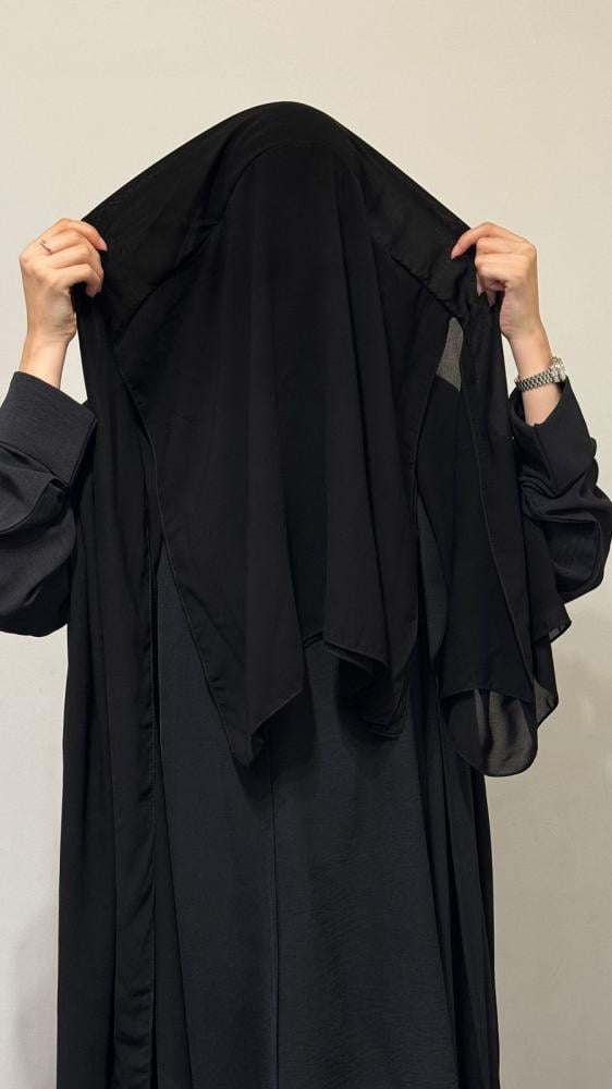 يثبت الغطوة مع الطرحة معاً و مدموجة بقطعة بندانة لتثبيت الغطوة على الراس